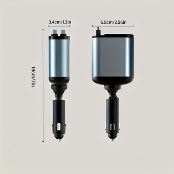 Cargador de coche 4 en 1 con pantalla de voltaje Cables retráctiles Puertos USB duales 2.4A 3A Carga rápida para vehículos de 12V 24V